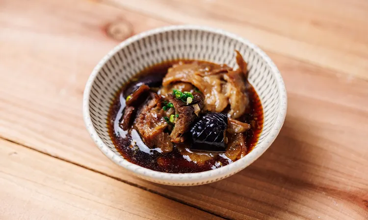 肉厚牛すじ肉を柔らかく煮込み、 旨味をたっぷり吸い込ませた逸品。口の中で広がるコク深い味わいをぜひご堪能ください。